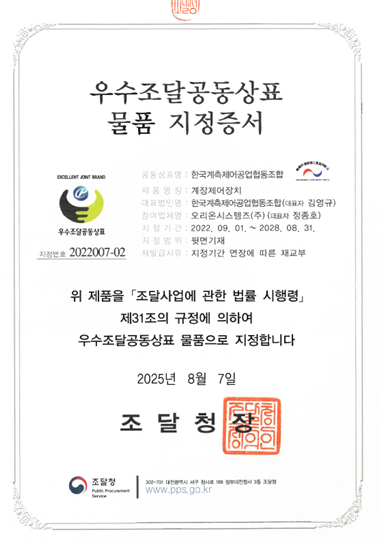 오리온시스템즈(주)는 우수조달공동상표물품 인증 및 녹색기술 인증을